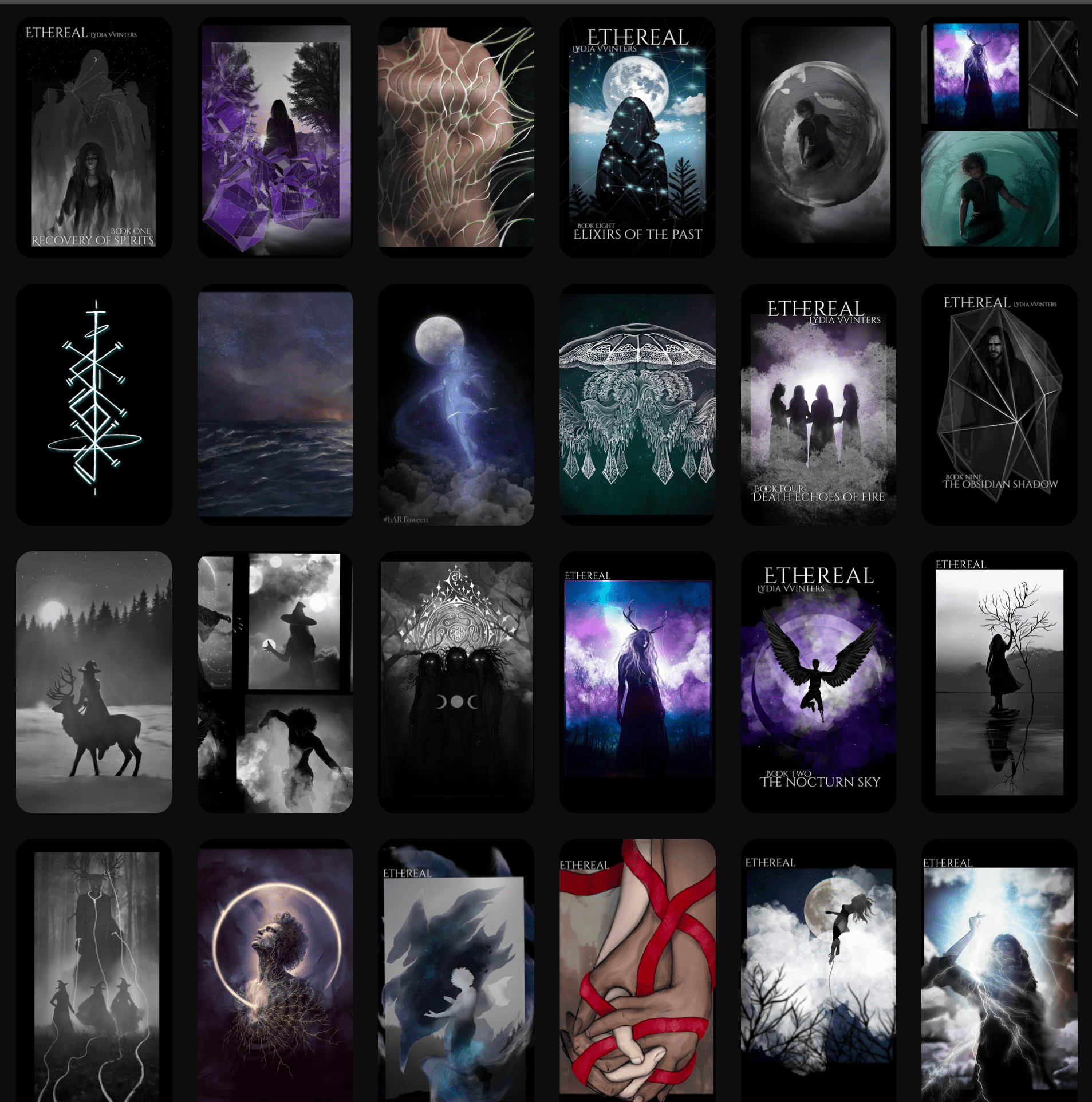 All Julia’s creative endeavours will now be housed under the pseudonym Lydia Vvinters. An author’s persona that grew into more of an identity. All works that were created by Julia between 2008 and 2021 have since been sold out. Have a look at the new work and style that emerged from a series of psychedelic, pagan, philosophical fantasy novels by Lydia Vvinters.